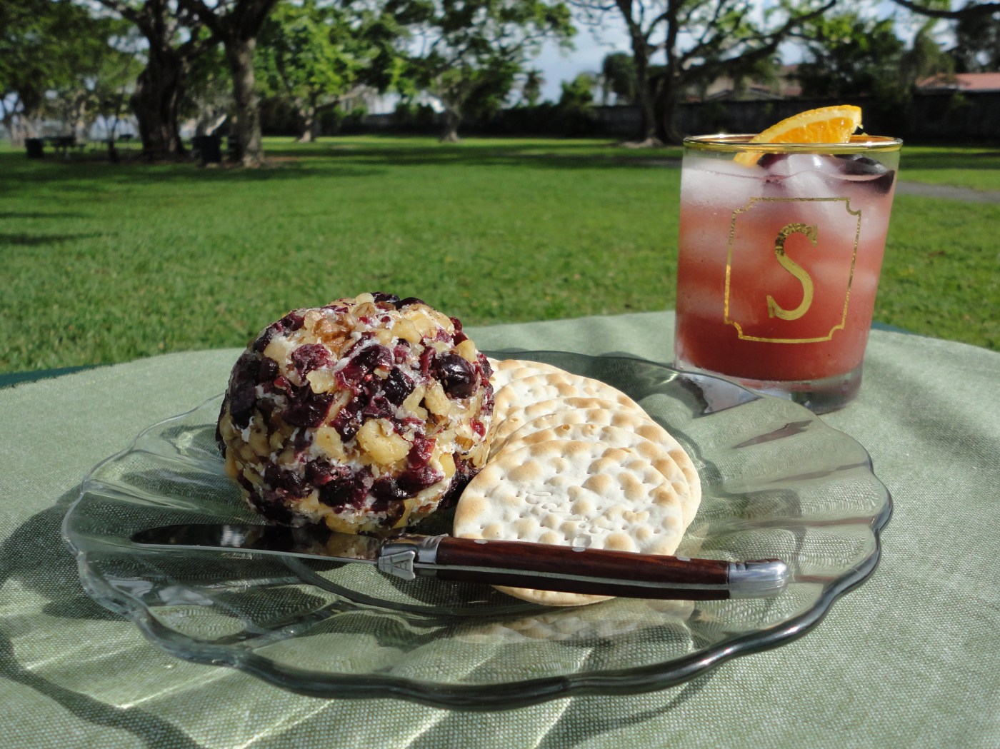 It’s been far too long since I’ve stumbled upon a majestic cheese ball on a holiday buffet or been offered a dangerously delicious glass of punch. Famously make-ahead, these classic recipes were developed to free up a host’s hands and encourage communal noshing. Sharing family gossip, bonds are strengthened while buttering a crumbly cracker or reaching for a glass and a pitcher. In my rendition, a tangy, savory mix of goat cheese with garlic and onion is beautifully coated with rich walnuts and sweet dried cranberries. A real showstopper. Wash it down with a fruity punch spiced with wintery cinnamon and nutmeg and just enough Grand Marnier to get even Grandma’s toes tapping.